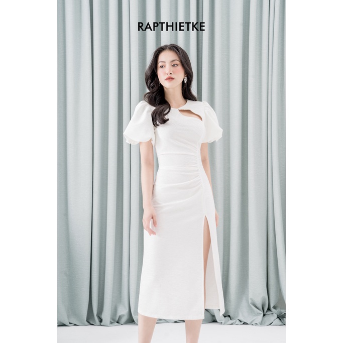 Giới thiệu RẬP - Đầm Trắng Tay Phồng Cổ Tròn Thân Xẻ - GOLD 05