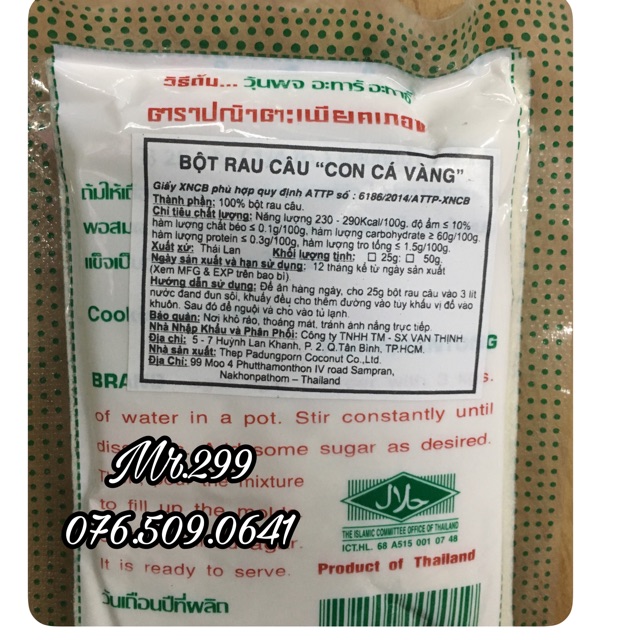 Rau câu con cá chính hãng từ Thái gói 25 gram và 50 gram giấy XNCB phù hợp quy định ATTP số 6186/2014/ATTP-XNCB