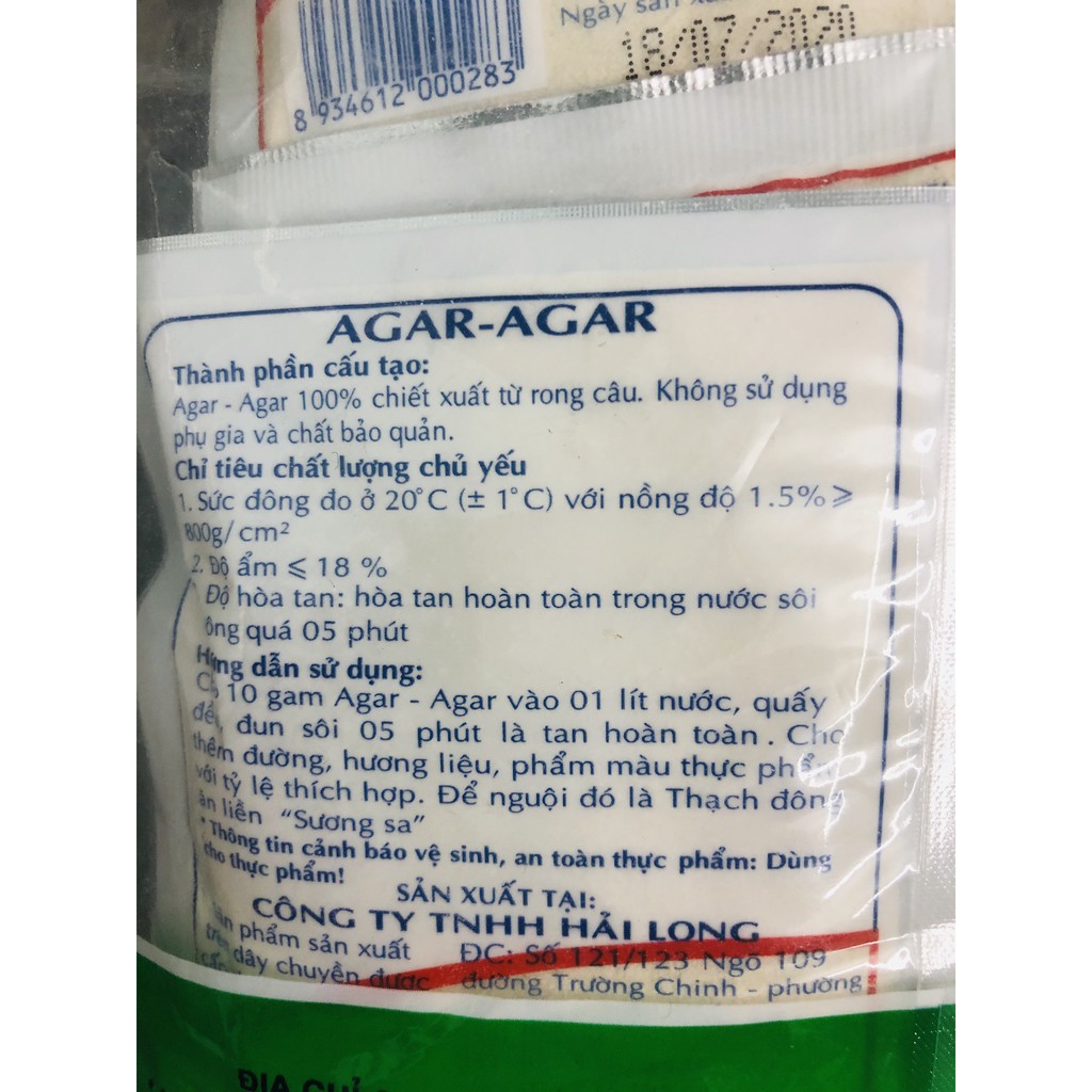 Tên Sản Phẩm : Rau Câu Giòn Hải Long Xuất Xứ : Việt Nam Hạn Sử Dụng : 12 Tháng Quy Cách Đóng Gói : 1 gói/500gr - (Loại 25gr và loại 50gr) Trọng Lượng : 500gr Bảo Quản Nơi Khô Ráo Thoáng Mát Mua Sỉ Xin Vui Lòng Liên Hệ : 0903322103 (A. Cẩm) – 0909123312 (C. Khánh)