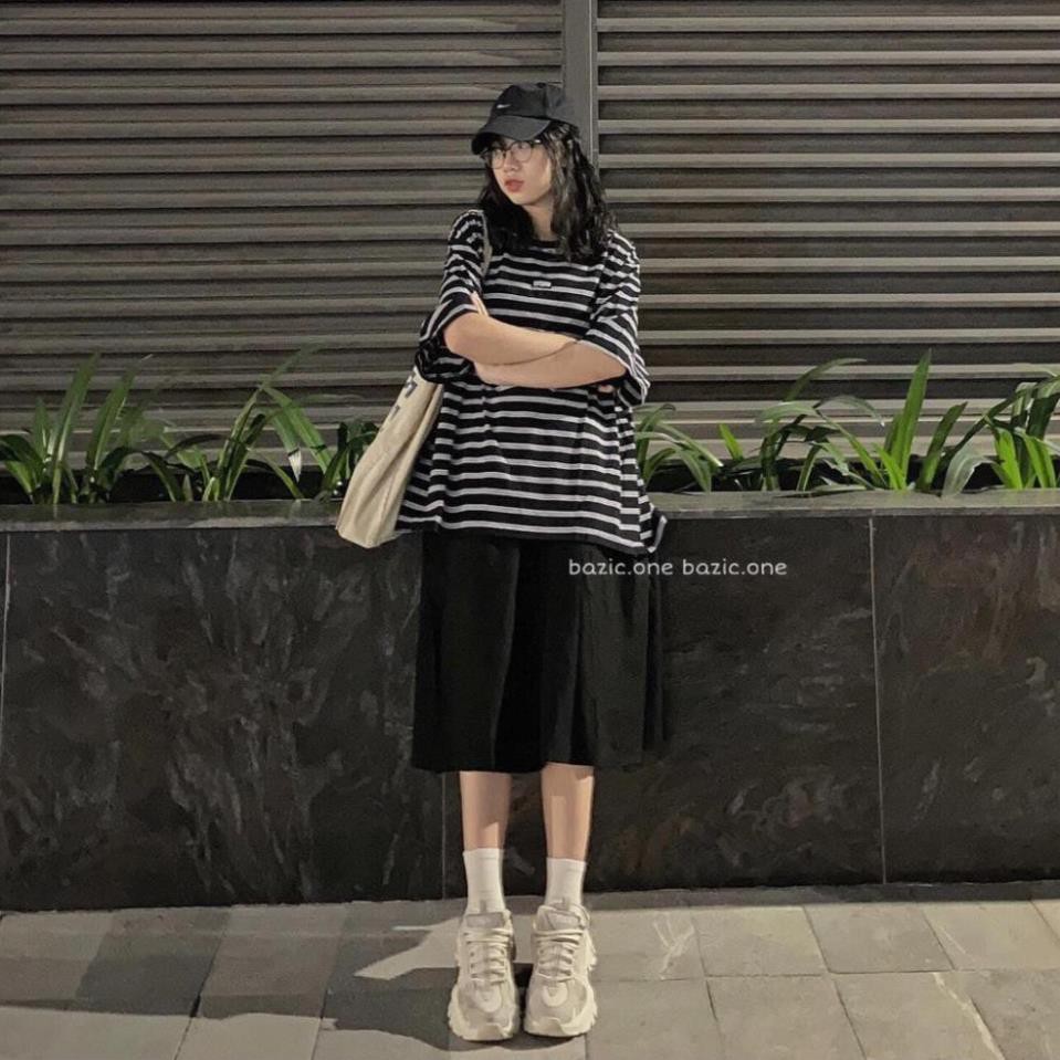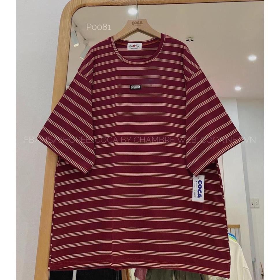 Giới thiệu [RẺ VÔ CỰC] Áo Thun Tay Lỡ - Áo Phông Kẻ Logo BRAND Form Rộng Unisex (Có Sẵn/Ảnh Thật)