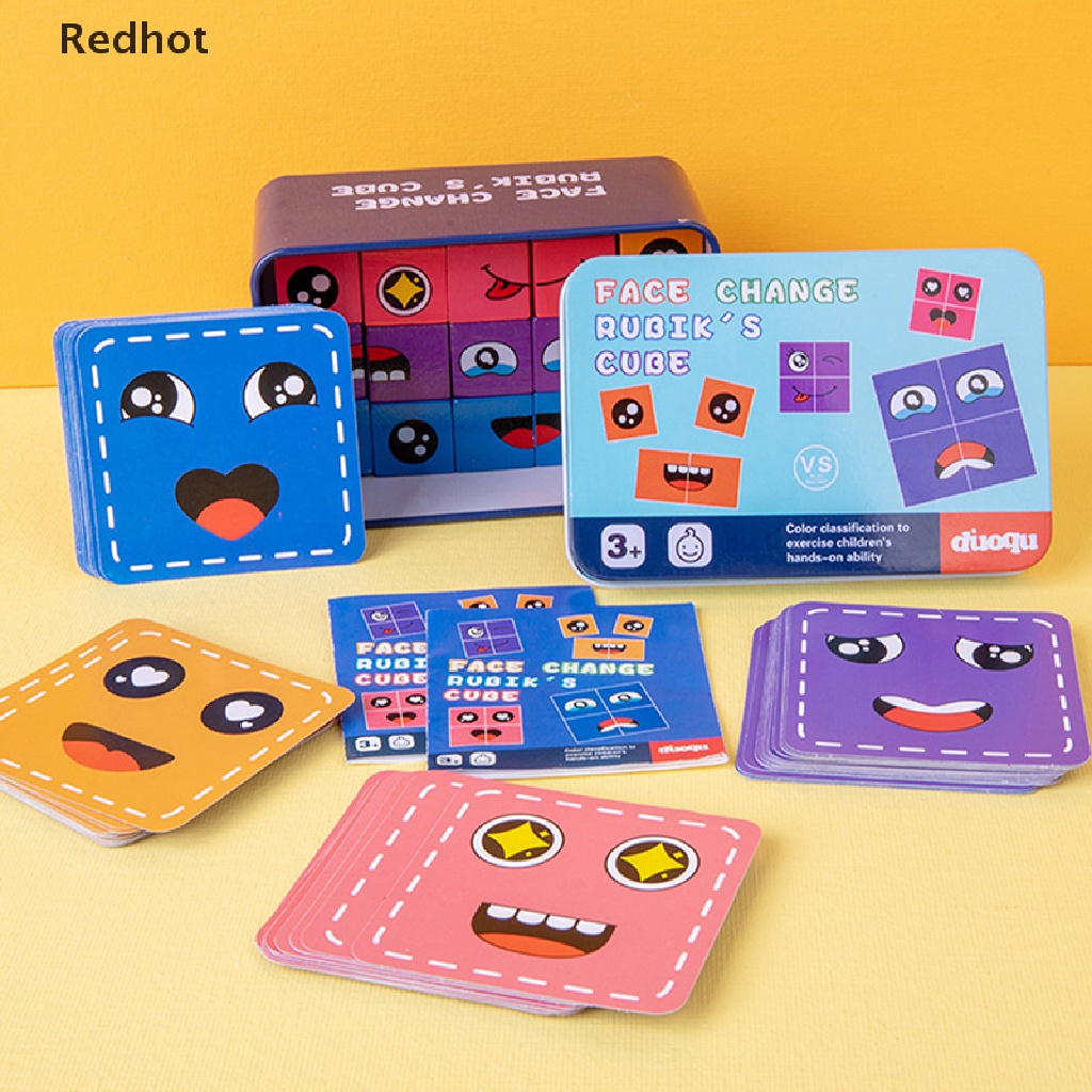 < Redhot > Đồ Chơi Khối Gỗ Lập Phương Biểu Tượng Cảm Xúc Thay Đổi Khuôn Mặt Giáo Dục Montessori Cho Trẻ Em