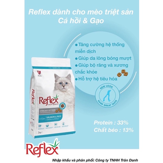 Giới thiệu Reflex Sterilised Salmon - Thức ăn cho mèo túi 2kg [ HỖ TRỢ TIẾT NIỆU CHO MÈO ĐÃ TRIỆT SẢN ]