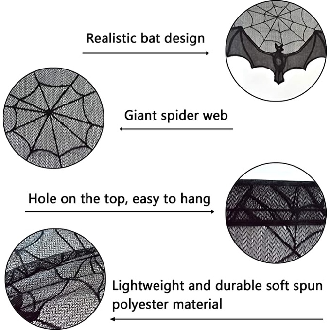 Giới thiệu Rèm Cửa Họa Tiết Mạng Nhện Màu Đen Trang Trí Halloween
