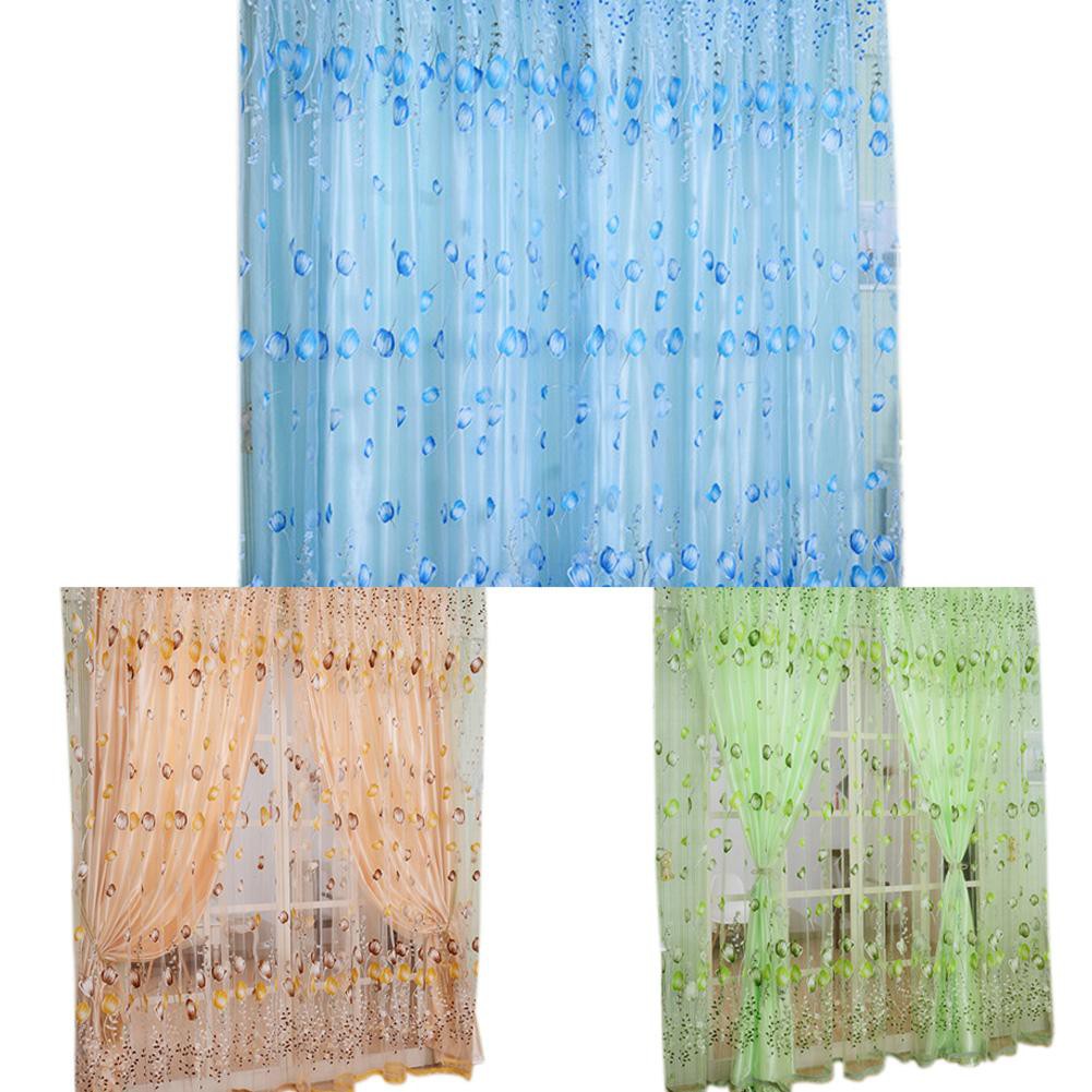 Giới thiệu Rèm Treo Cửa Sổ Vải Sheer Vải Tuyn Tua Rua Họa Tiết Hoa Tulip Xinh Xắn