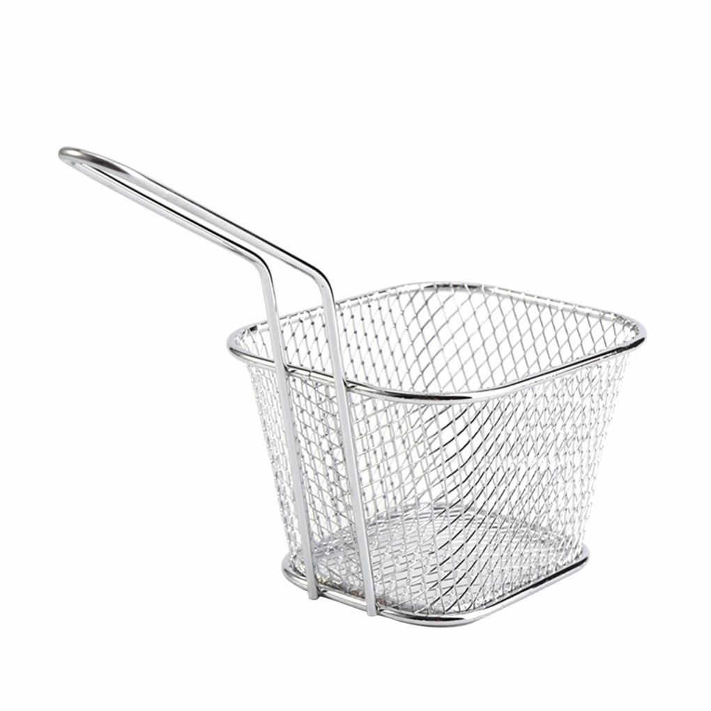 Features The outstanding resting feet not only keep the food strainer basket stable. It also could be for steam vegetables.the nice multi-function for draining the water/oil when it containing the pre-cook foods and veggies. Perfect for DIY the french fries, potato chips,onion rings,fried chicken. No matter at home or use for restaurant to quick to prepare your favorite snack food. Easy to clean,dish wash safe, lightweight, easy to carry with essential accessories when go out or at home. Description Material: Iron wire,plating. Size: 10.5*8.5*6.5cm. Color: Silver. Notes: Due to the light and resolutions setting difference, the item's color may be slightly different from the pictures. Please allow slight dimension difference due to different manual measurement. Package included: 1 * French fries fry basket.