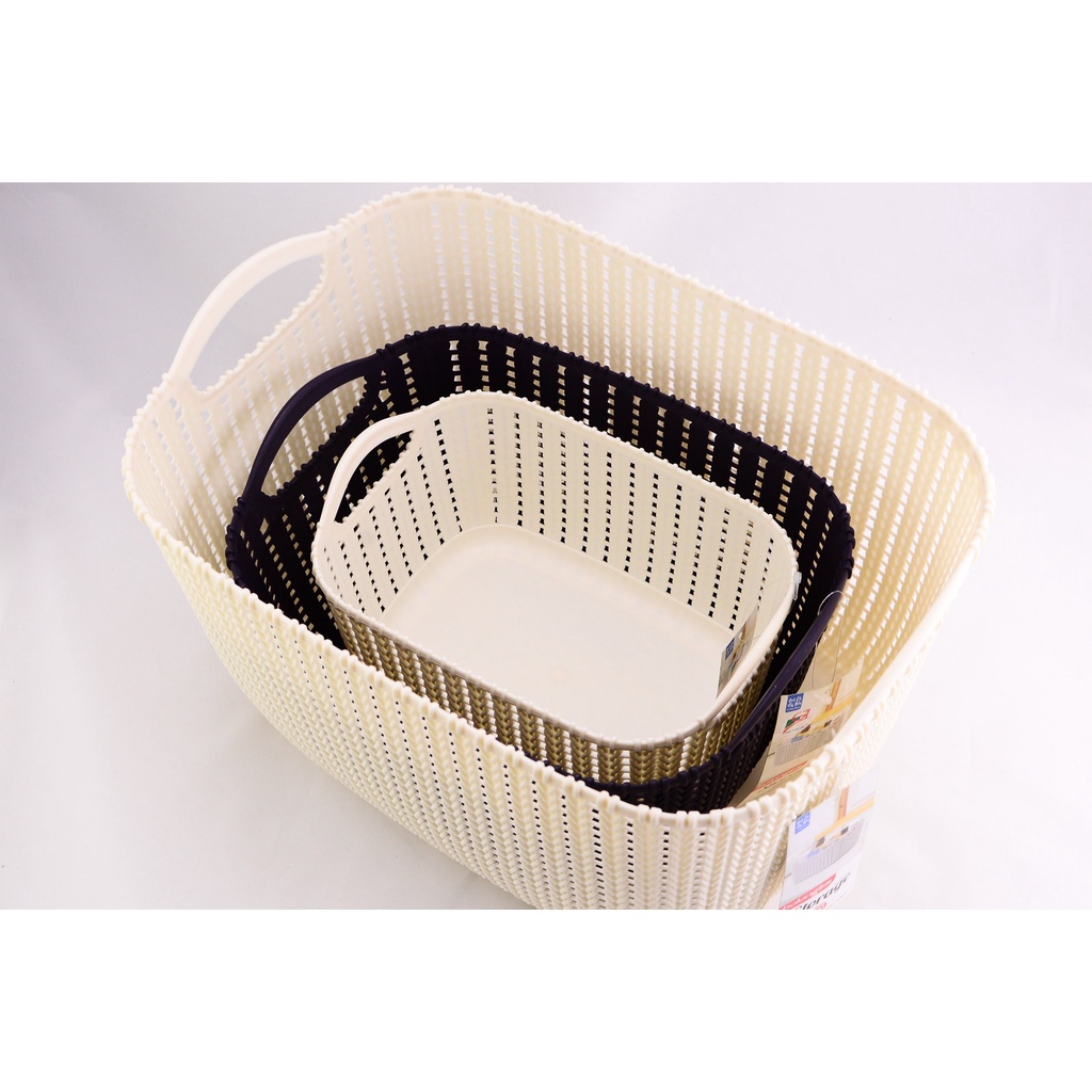 Giới thiệu Rổ đựng quần áo, vật dụng nhựa đan giả mây có tay cầm phong cách Hàn Quốc 3 size (màu ngẫu nhiên) PGL