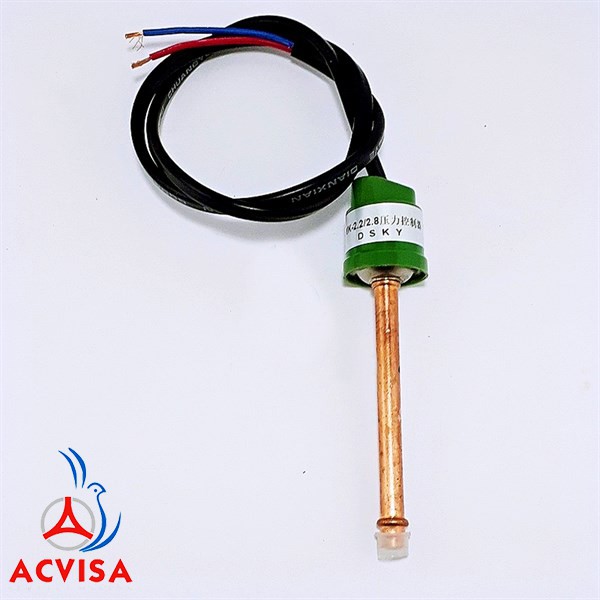 Rơ le áp suất cao YK-2.2/2.8 Loại :Rơ le áp suất cao Kiểu : Chân rắc / Dây dẫn. Chiều dài dây dẫn 40 cm ĐK ống áp : D6mm Áp suất OFF : 2.2 Mpa Áp suất ON : 2.8 MPa Tình trạng SP : Mới 100% Ứng dụng: Rơ le áp suất đóng ngắt nguồn sử dụng cho các loại máy nén khí, nén gas, khí hóa lỏng .....