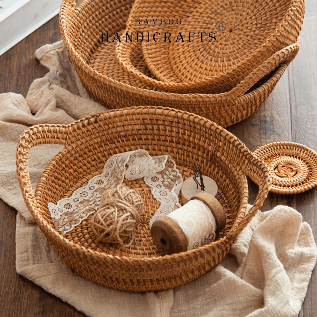 Rổ mây tròn đựng bánh mỳ, đựng đồ ăn, khay đựng đồ picnic decor chụp ảnh đẹp mắt Tre Làng 👉CAM KẾT HÀNG MÂY TRE ĐAN THỦ CÔNG, NGUYÊN LIỆU ĐÃ QUA XỬ LÝ CHỐNG MỐC, THÂN THIỆN VỚI MÔI TRƯỜNG