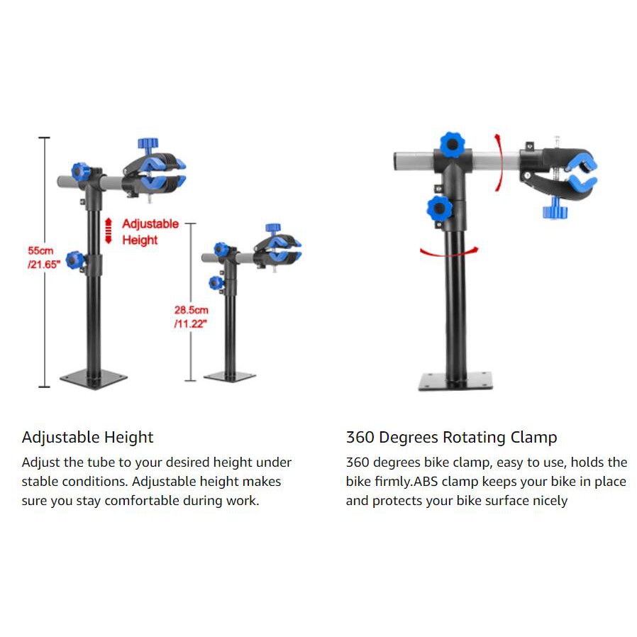 Lưu ý: Vui lòng gắn trên băng ghế làm việc ổn định hoặc tường vững chắc, v.v. Khi sử dụng sản phẩm này, hãy đảm bảo trung tâm trọng lực được cân bằng. Phạm vi kẹp là tối đa 6cm / 2,36 ''. Vui lòng không sử dụng sản phẩm này với xe đạp quá khổ. Giữ tối đa 20kg / 44lbs gắn trên băng ghế làm việc, gắn dưới 20kg / 44lbs trên tường. Vui lòng tránh vượt quá trọng lượng này.