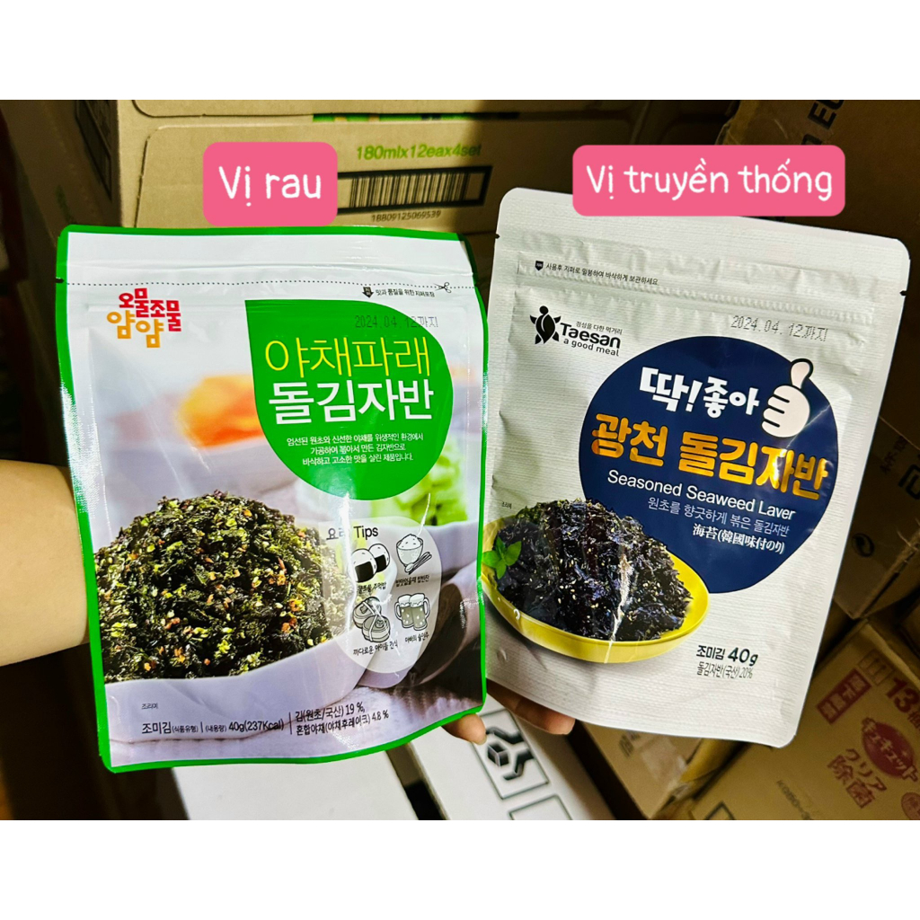 🍀 RONG BIỂN TRỘN CƠM HÀN QUỐC - HÀNG LOẠI I - SIÊU NGON - SIÊU HOT 💁💁 Ăn cơm nóng với rong biển này thì tốn cơm lắm ạ! 👉👉 CÁC BÉ MÊ TÍT LUÔN! ⭐️⭐️⭐️ Vụn rong biển trộn cơm, chưa bao giờ ngon đến thế, lại quá tiện và dinh dưỡng. 👍👍 Hàng nhập khẩu Hàn Quốc 💁Rong biển vụn đã tẩm sẵn dầu oliu và vừng ăn cực vừa miệng không hề tanh, chị em nào chưa thử ăn rong biển thì triển loại này đi ạ 💁Dùng để ăn liền cùng cơm hoặc ăn vã thay snack bimbim cũng okie
