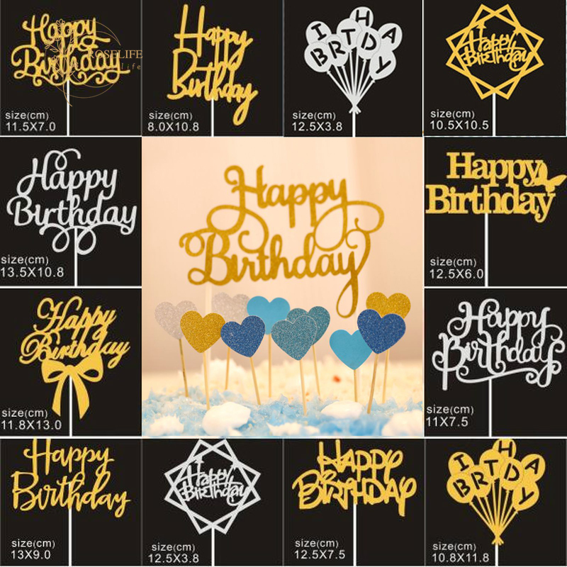 Giới thiệu Roselife Gold Silver Gittlery Happy Birthday butterfly Cake Topper baby One Year Party Decoration 1PC