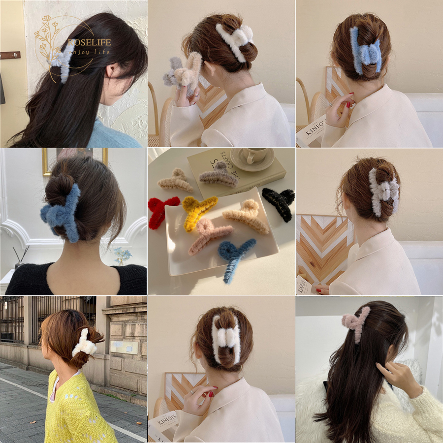 Giới thiệu Roselife Trendy Fur Korean Girl Wool Hairpin Ponytail Holder Hair Claw Clip winter autumn