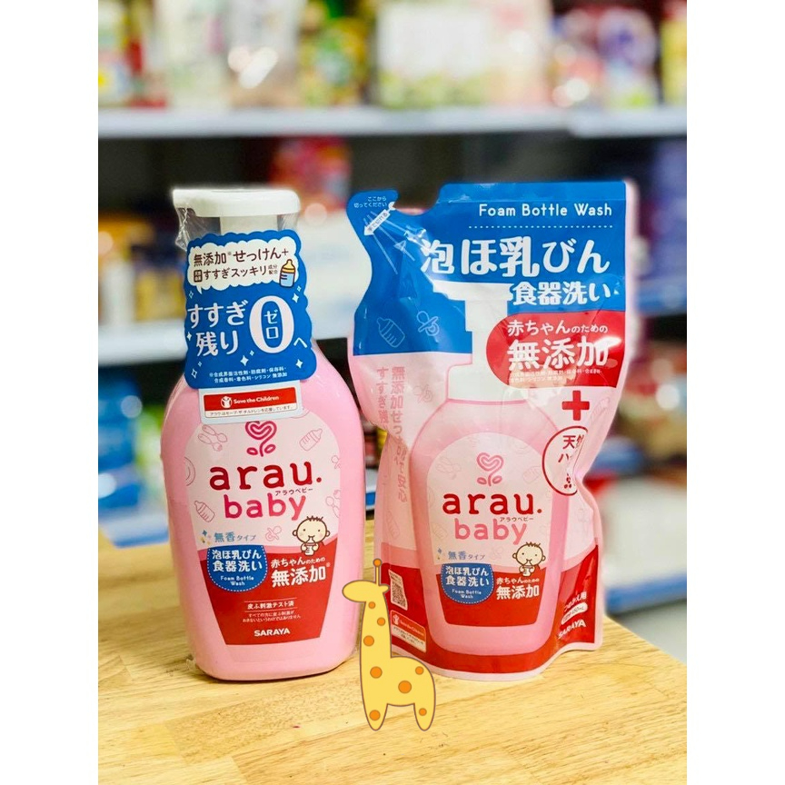 Nước Rửa Bình Sữa Nhật Bản, Nước Rửa Bình Arau Chai 500 Ml Túi 450 Ml Làm Sạch Nhanh Kháng Khuẩn An Toàn Cho Bé