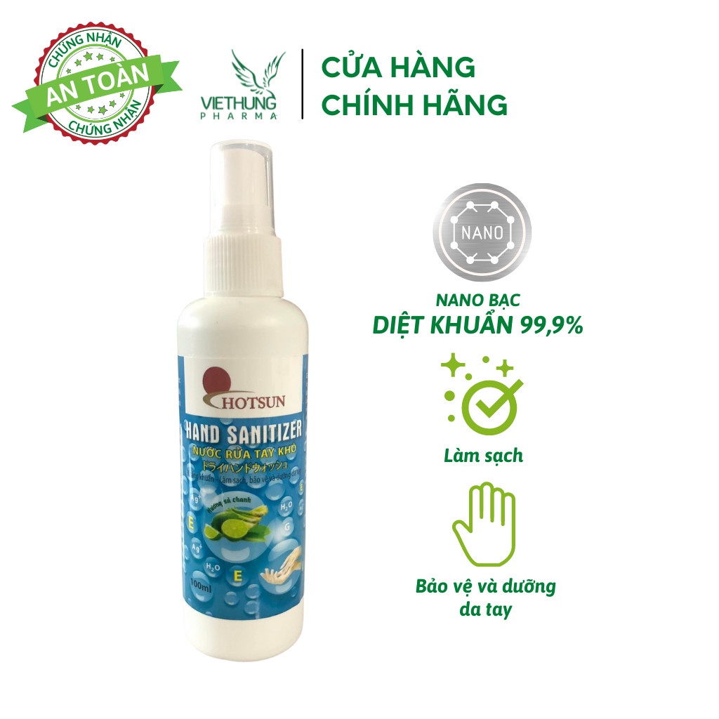 Sức Khỏe > Vật tư y tế > Dung dịch sát khuẩn tay > Nước Rửa Tay Khô Dạng Xịt Viehung Pharma, Xịt Rửa Tay Nano Bạc Giúp Diệt Khuẩn Tối Đa, Không Gây Khô Da, Chai Xịt 100 Ml