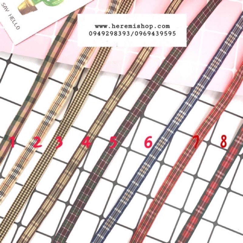 ruy băng kẻ caro loại 1cm, 2cm dùng làm dây buộc tóc, tết hoa, ruy băng nơ hoa cùng nhiều ứng dụng khác.