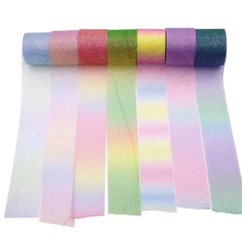 Nhà Sách Online > Gói Quà > Ruy băng > Ruy băng lưới đổi màu nhũ bạc làm phụ kiện tóc. handmade