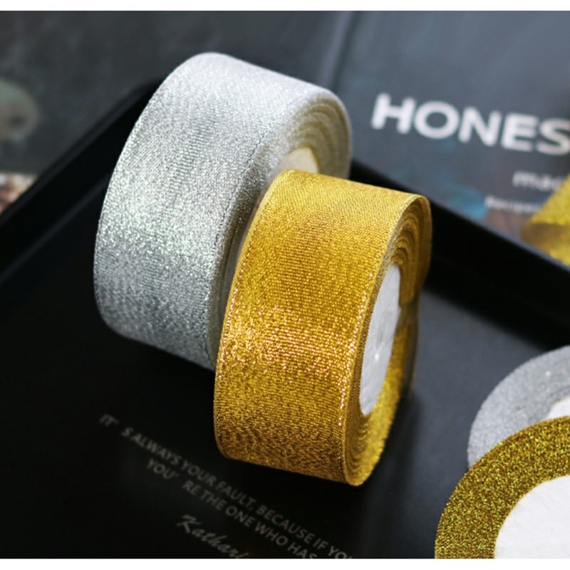 Ruy băng nhũ kim tuyến 2cm-4cm , dùng làm nơ trang trí.