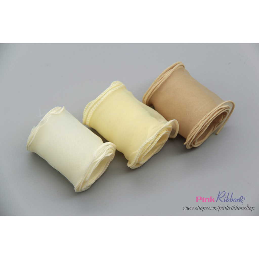 Ruy băng làm từ vải voan mờ cao cấp, viền quấn bèo, có lõi cước để tạo dáng nơ. Kích thước bề ngang: 6cm Màu sắc: 11 màu Quy cách: 7.000/mét Thích hợp sử dụng làm phụ kiện tóc, phụ kiện may mặc, phụ kiện thời trang, handmade, DIY.... Lưu ý: Màu sắc sản phẩm có thể có đậm hay nhạt hơn ảnh do chế độ hiển thị ở các thiết bị khác nhau. #voanvienbeo #ruybangvoan #ruybangvienbeo #ruybangvoanvien #dayvoan #dayvienbeo