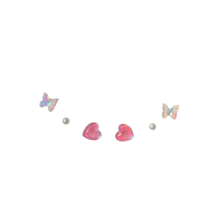 Giới thiệu S925 Bộ 6 Khuyên Tai Hình Trái Tim / Bướm / Ngọc Trai Bằng Nhựa Resin Thời Trang Cho Nữ
