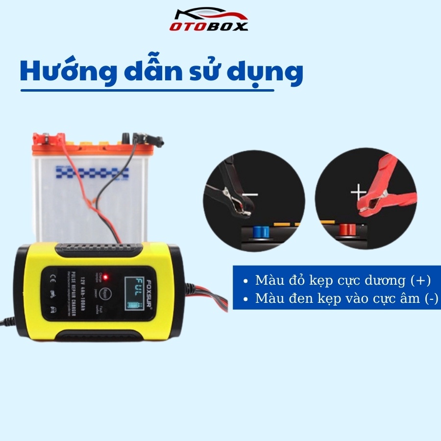 Giới thiệu sạc bình ắc quy 12v xe máy ô tô 100ah foxsur tự ngắt khi đầy, máy sạc bình acquy tự động chống ngược cực