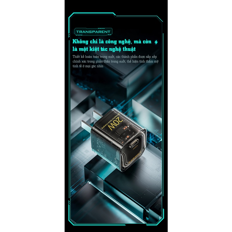 ☀️ Sạc không chỉ là sạc mà còn là một kiệt tác nghệ thuật. Thiết kế ấn tượng, trong suốt, đẹp mắt, các thành phần được sắp xếp một cách hoàn mỹ bên trong, thể hiện thẩm mỹ ở mọi góc nhìn. Vật liệu PC cao cấp, an toàn, chống cháy, chống bám bẩn, chống xước.