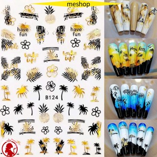 ME Miếng Dán Trang Trí Móng Tay Hình Hoa Lá Màu Vàng Đen Lấp Lánh DIY