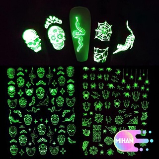 [Hàng mới về] Miếng dán trang trí móng tay phát sáng trong tối hình đầu lâu/nhện/ngôi sao/nhện 3d