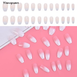 < Yiwuyuan > Keo Dán Móng Tay Giả Acrylic Màu Trắng Gradient Kiểu Pháp