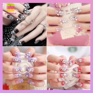 DIACHAVN Bộ Móng Tay Giả Kèm Keo Dán Đính Đá Lấp Lánh