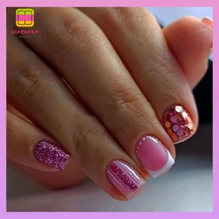 DIACHAVN Móng Tay Giả Đính Đá Màu Hồng Thời Trang Dành Cho Nữ