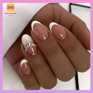 DIACHAVN Bộ 24 Móng Tay Giả Che Phủ Toàn Diện Đính Pha Lê Lấp Lánh Có Thể Tháo Rời