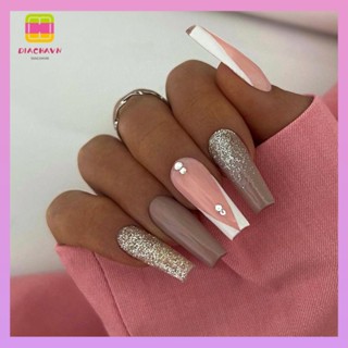 DIACHAVN Set 24 Móng Tay Giả Đính Đá Trang Trí Cho Nữ