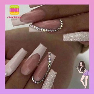 Bộ 24 Móng Tay Giả Che Phủ Toàn Diện Đính Đá Xinh Xắn
