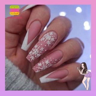 Set 24 Móng Tay Giả Hình Hoa Tuyết / Trái Tim Có Thể Tháo Rời DIY