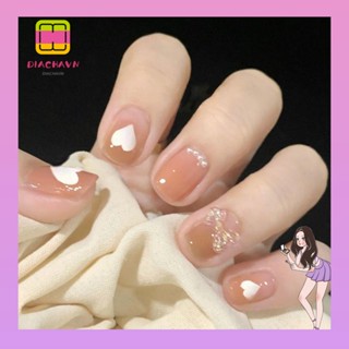 Set 24 Móng Tay Giả Bằng Acrylic Che Phủ Toàn Diện Thắt Nơ Trái Tim