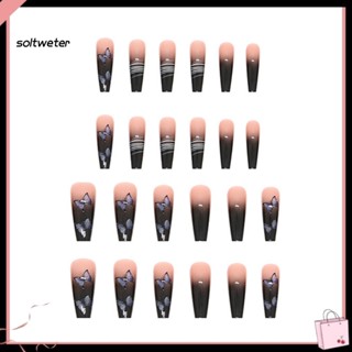 Bộ 24 Móng Tay Giả Họa Tiết Sọc Màu Sắc Gradient Dễ Tẩy Trang Cho Nữ