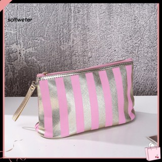 Túi Đựng Mỹ Phẩm Họa Tiết Kẻ Sọc Màu Sắc Tươi Sáng Sức Chứa Lớn Có Khóa Kéo Tiện Dụng