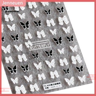 Set 5 Móng Tay Giả Bằng Kim Loại Đính Hạt Charm Nơ Trắng Đen Tự Nhiên Sáng Tạo