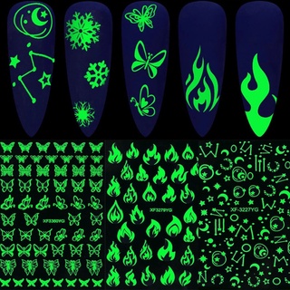 Nhãn Dán Móng Tay Họa Tiết Bướm / Mặt Trăng / Ngôi Sao / Ngọn Lửa 3D Dạ Quang Trang Trí Độc Đáo