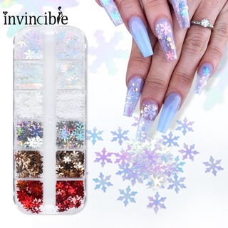 Hộp Kim Tuyến 12 Ngăn Hình Bông Tuyết 3D Trang Trí Móng Tay