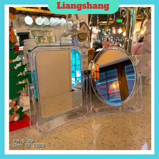 Gương trang điểm để bàn trong suốt 2 mặt gương xoay 360 độ thiết kế sang chảnh phong cách Hàn Quốc