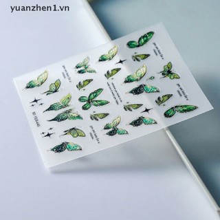 1 Tờ Miếng Dán Trang Trí Móng Tay Hình Bướm 5D Màu Gradient