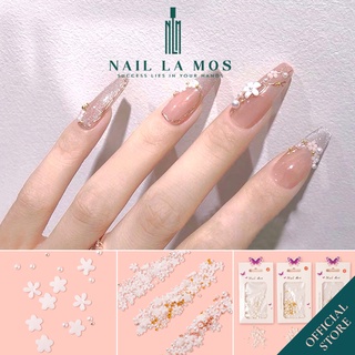 Phụ kiện hoa nhí nail mix bi - hoa sứ nhí nail màu trắng đính móng phong cách Hàn Nhật