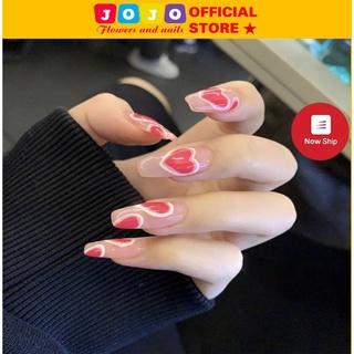 set 24 móng tay giả dài vuông hồng trái tim thiết kế Jojo PD258 móng giả nailbox thời trang sang chảnh tự làm tại nhà