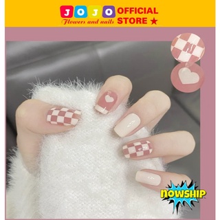 set 24 móng tay giả ngắn vuông sơn đầu móng Jojo PD210 móng giả nailbox hottrend thiết kế thời trang rẻ đẹp tự làm