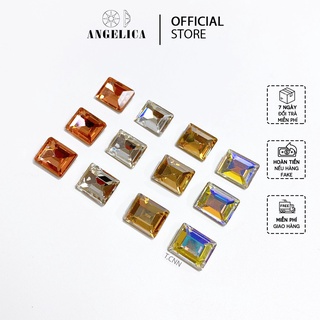 Túi 10 Viên Đá khối Nail Hình Vuông Chân Vàng Trang Trí Móng ANGELICA V