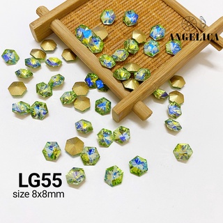 Túi 10 Viên Đá khối Nail Hình Lục Giác Màu Xanh Bơ Chân Vàng Trang Trí Móng ANGELICA LG
