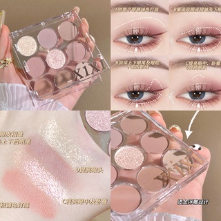 Bảng Phấn Mắt XIXI 9 Màu Lì Và Ánh Nhũ Kết Hợp Trang Điểm Kháng Nước Lâu Trôi 13.5g
