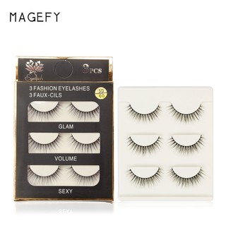 [Hàng mới về] Bộ 3 cặp lông mi giả MAGEFY cong tự nhiên mềm mại dành cho trang điểm hàng ngày
