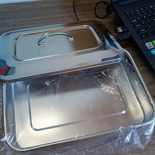 Khay inox chữ nhật đụng dụng cụ y tế KT 30x20x5 cm kèm nắp đậy